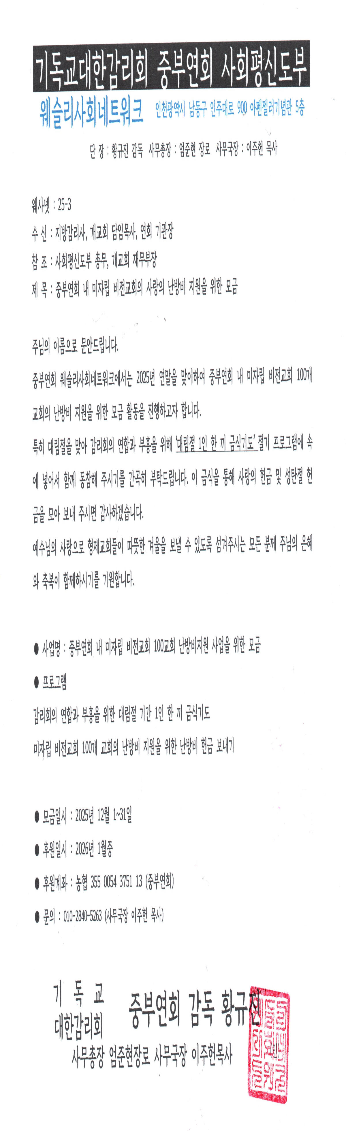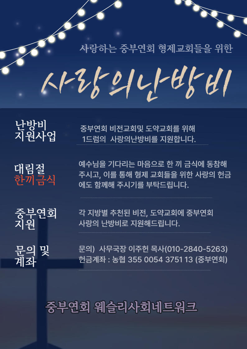 중부연회 내 미자립 비전교회의 사랑의 난방비 지원을 위한 모금(2025~2026)