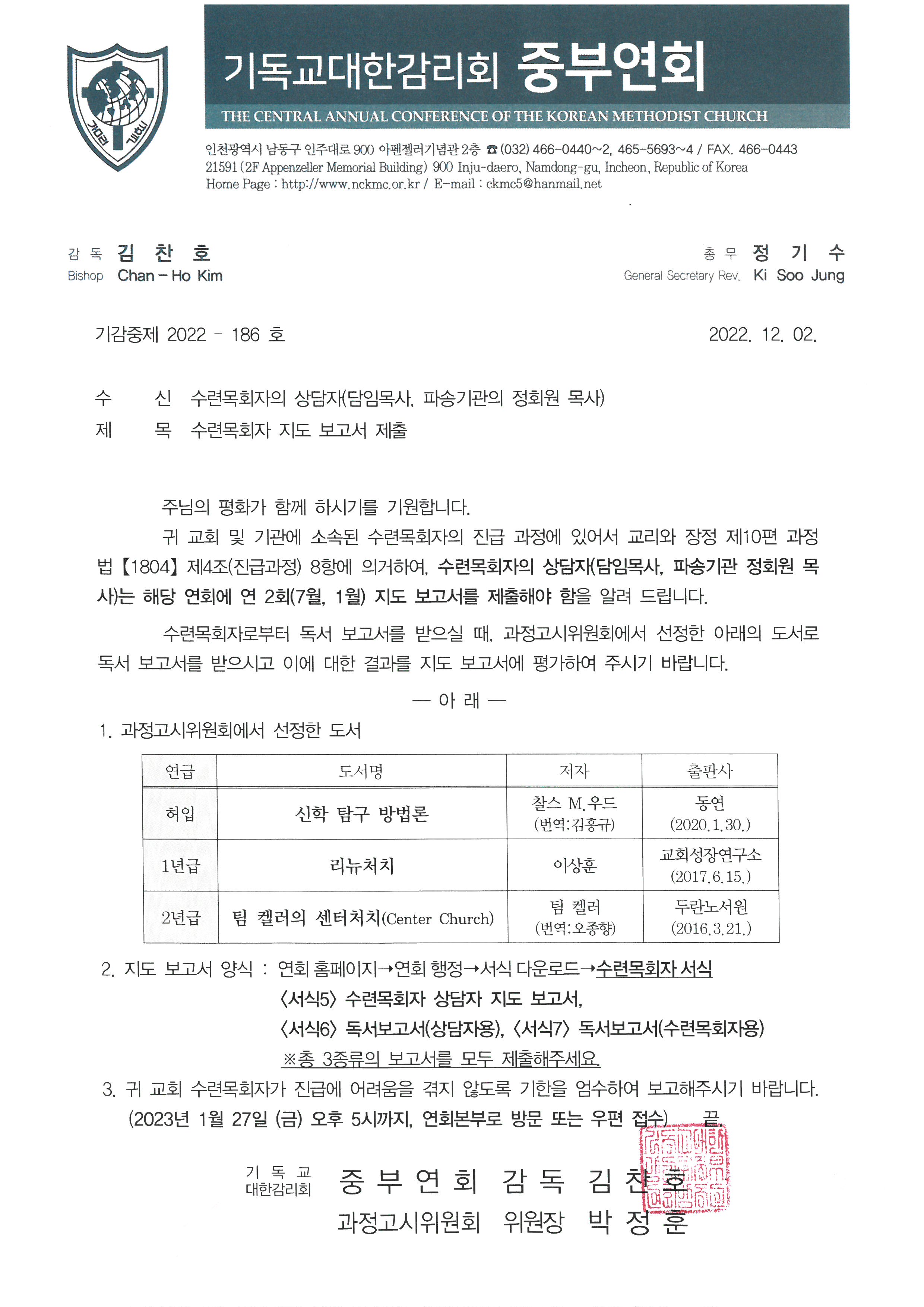 2023년 1월 27일(금)까지 제출하는 수련목회자 지도(독서)보고서의 선정 도서를 먼저 알려드립니다.