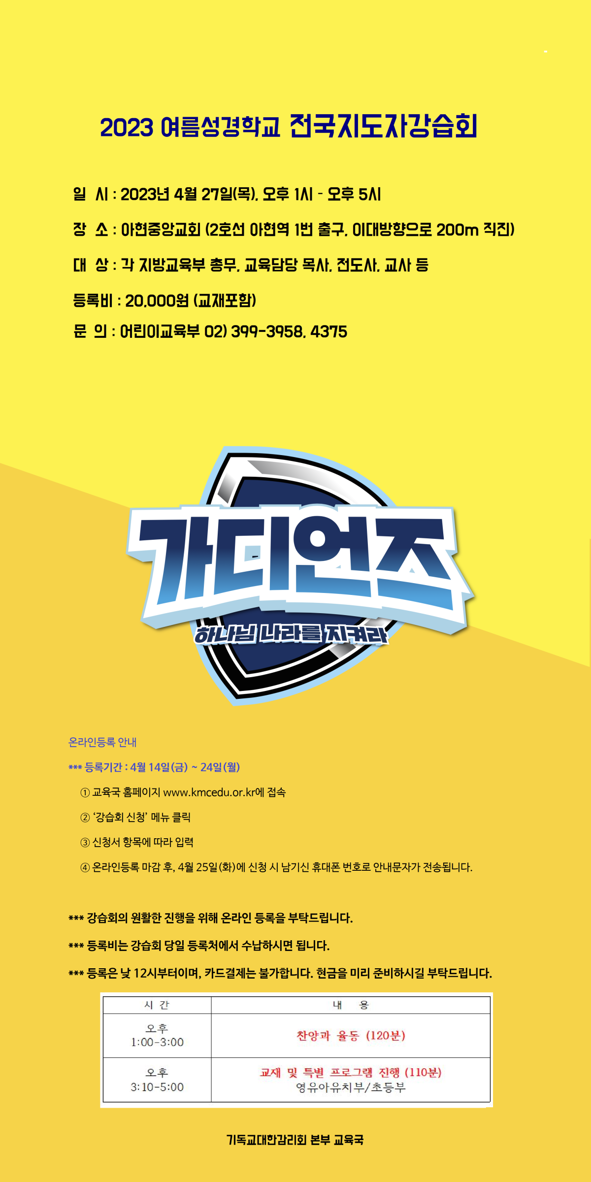 대 상 : 각 지방교육부 총무, 교육담당 목사, 전도사, 교사 등