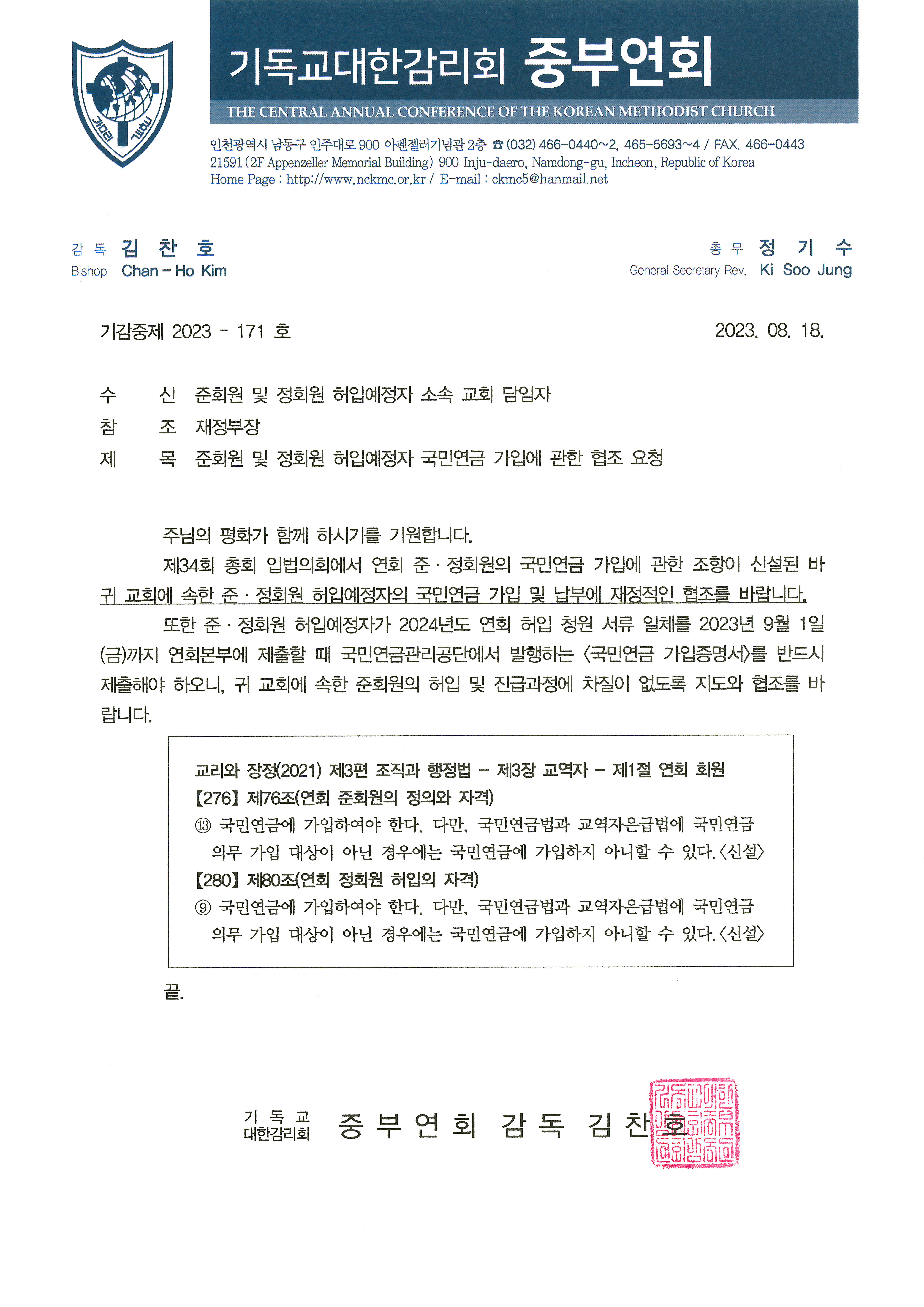 준·정회원 허입예정자 국민연금 가입에 관한 협조 요청