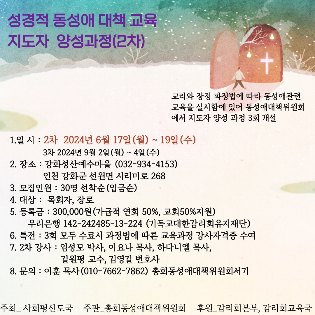 1. 제 목 : “성경적 동성애 대책 교육 지도자 양성과정 (2차)”