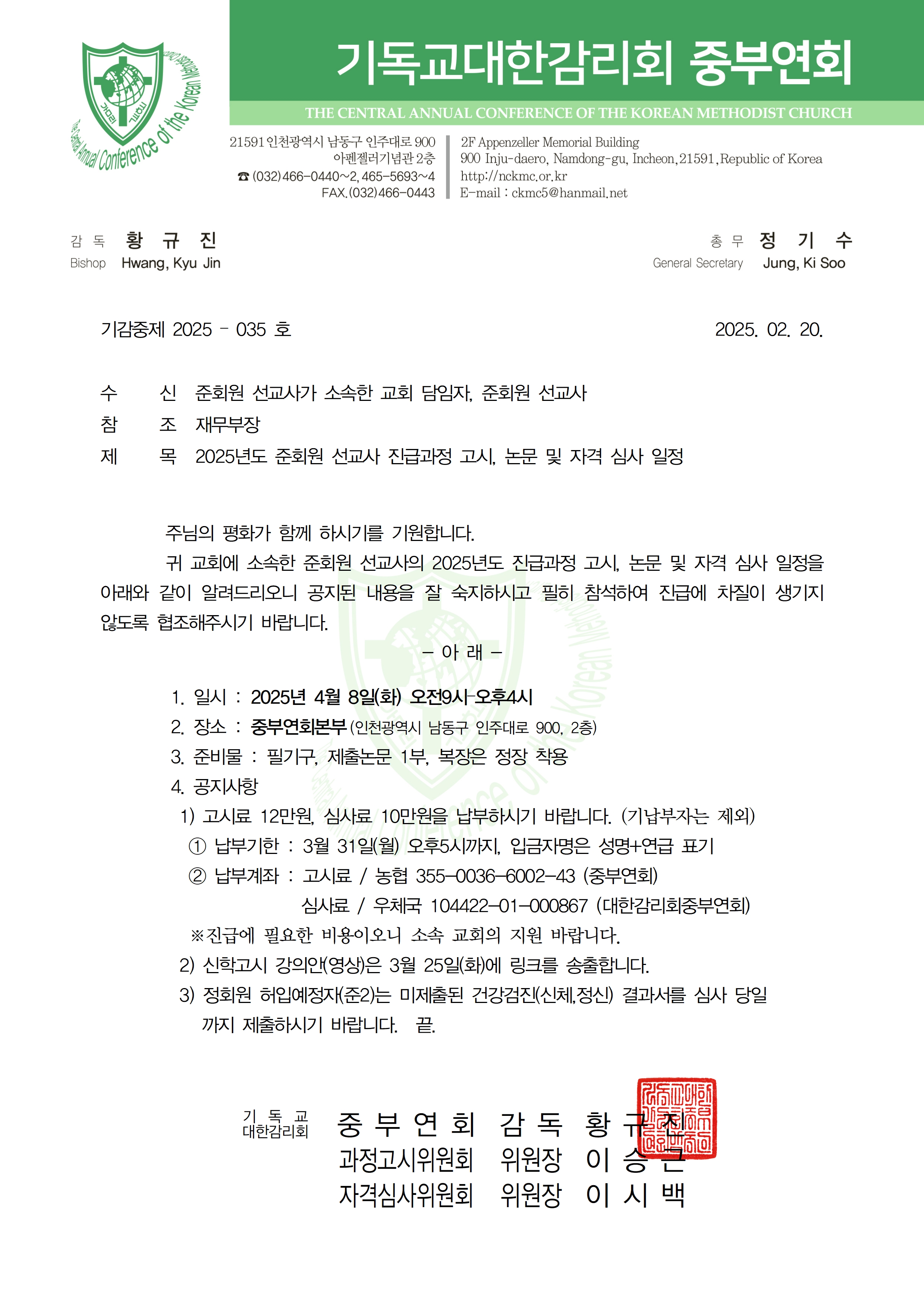 2025년도 준회원 선교사 진급과정 고시, 논문 및 자격 심사 일정(선교사)