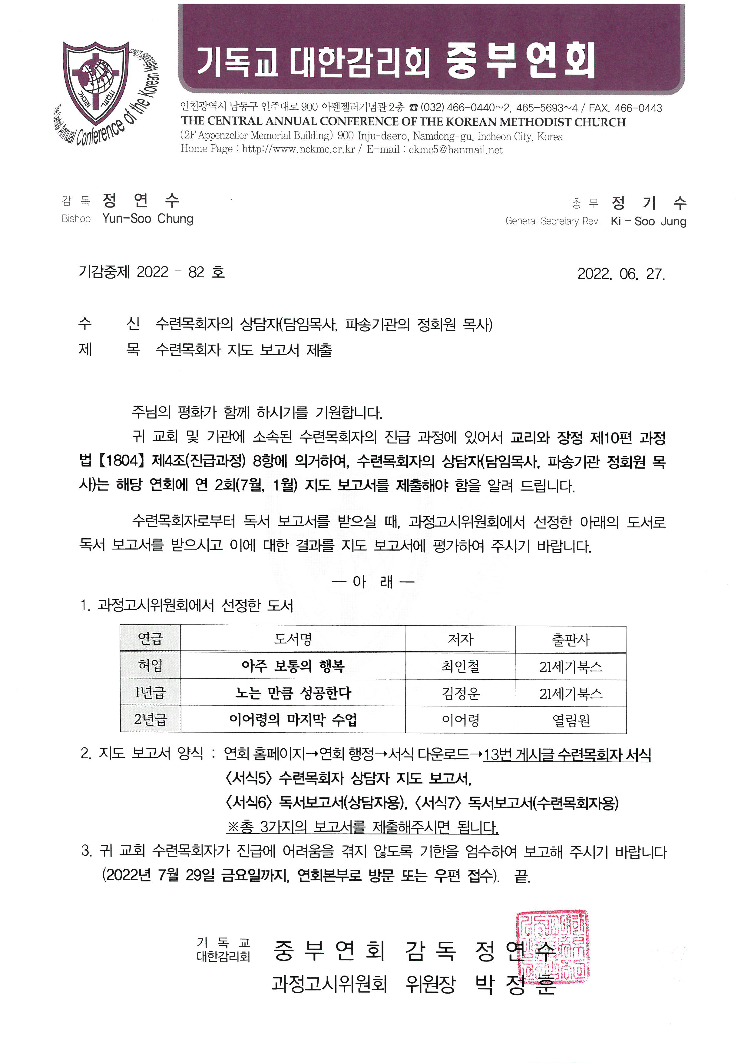 수련목회자 지도보고서 제출 안내