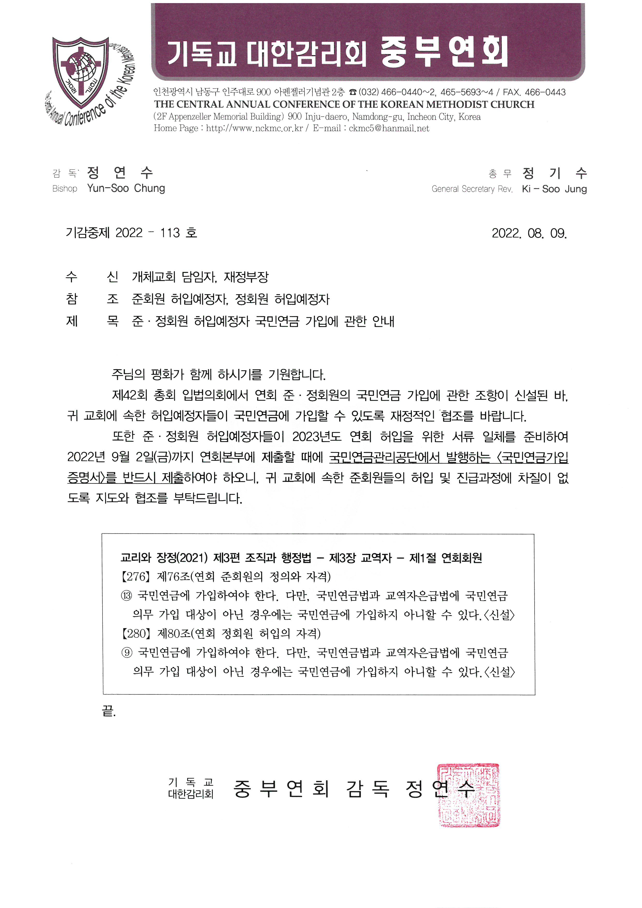 준·정회원 허입예정자 국민연금 가입에 관한 안내