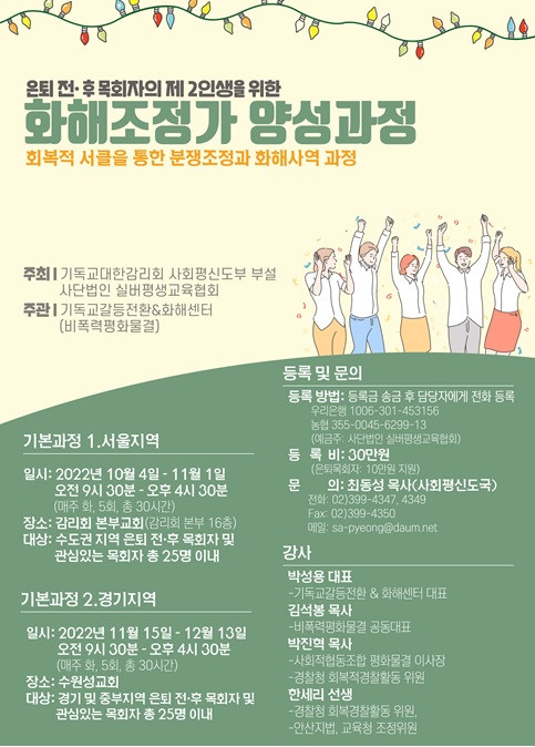 은퇴 목회자 제2의 인생을 위한 화해조정가 양성과정에 초대합니다